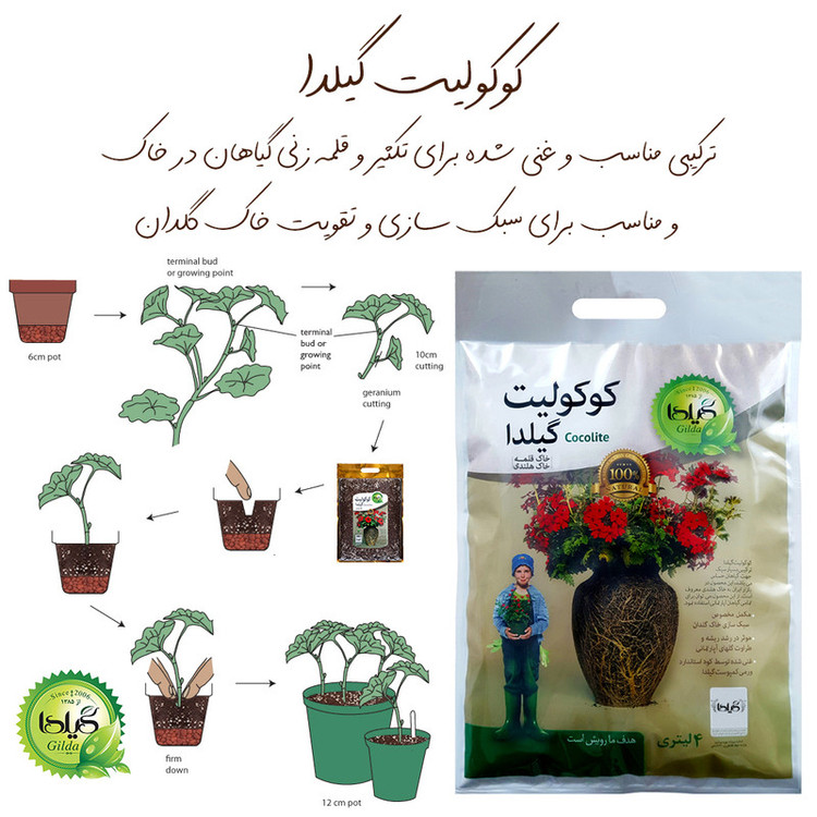 - دارای پروانه بهره برداری و بهداشتی - غنی شده توسط کود استاندارد ورمی کمپوست گیلدا - مناسب جهت استفاده در قلمه زنی - سبک سازی خاک گلدان - رشد و حرکت آسان ریشه در خاک