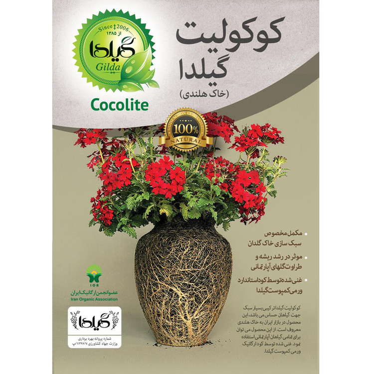 کوکولیت (خاک قلمه - خاک هلندی) ترکیبی از کوکوپیت ، پرلیت و ورمی کمپوست می باشد که در ایران به خاک هلندی معروف شده است. این ترکیب جهت قلمه زنی، سبک سازی ، تقویت و تامین رطوبت خاک گلدان استفاده می گردد. با استفاده از این ترکیب و مقداری پوکه در کف گلدان می توانید برخی از گونه های گیاهی که قابلیت قلمه زنی را دارند تکثیر نمایید، ترکیب کوکوپیت و پرلیت نقشی در تقویت گیاه ندارند و گیلدا به لحاظ تامین مواد غذایی گیاه در این محصول به مقدار لازم کود ورمی کمپوست استاندارد گیلدا را به ترکیب اضافه نموده است. استفاده و ترکیب این محصول در خاک گلدان گیاهان آپارتمانی علاوه بر سبک سازی و تامین رطوبت باعث تقویت گیاه نیز می گردد. محصولی که در تصویر مشاهده میکنید « کوکولیت گیلدا » یا «خاک قلمه - خاک هلندی» است. این محصول کاملا ارگانیک بوده و از هیچ گونه مواد شیمیایی در تولید آن استفاده نشده است. گیلدا بیش از ده سال است که در زمینه تولید نهاده های کشاورزی تحقیق و فعالیت مینماید. تحقیقات تخصصی انجامشده توسط متخصصان این برند، باعث تولید محصولاتی طبیعی و ارگانیک با نام تجاری گیلدا شده است. استفاده از این محصولات سلامتی و شادابی بیشتری به گیاهان شما خواهد بخشید.