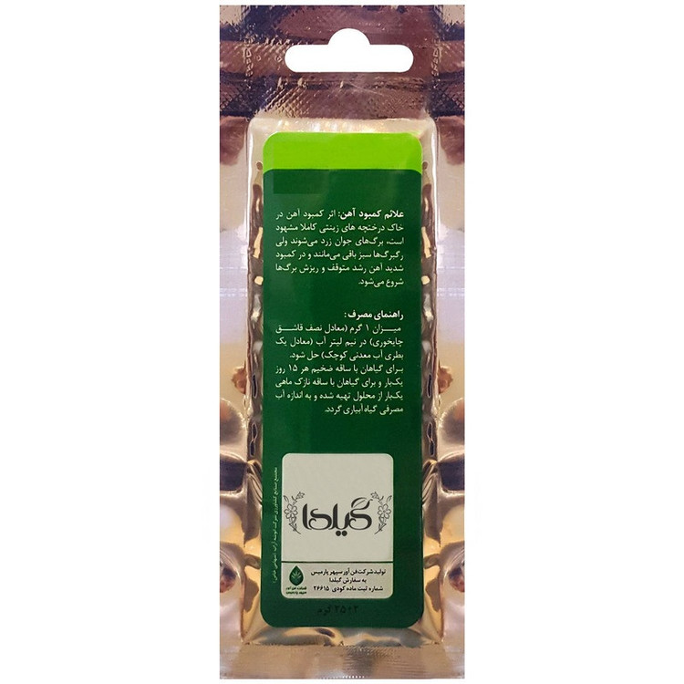 تامین آهن مورد نیاز گیاهان درختچه های زینتی افزایش رشد در تمام گونه های درختچه های زینتی تامین کننده کلیه عناصر مورد نیاز درختچه های زینتی جلوگیری از ریزش برگ های درختچه های زینتی حلالیت بالا , جذب سریع و تاثیر فوق العاده
